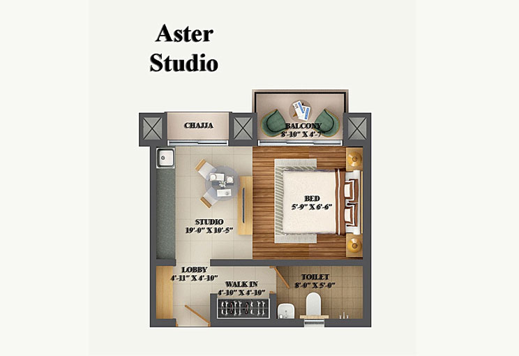| 1 | Studio (1RK) | 305 sq.ft | 327 sq.ft | 18 Lacs | Aster | Click Here |